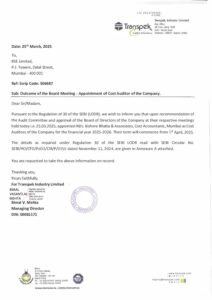 BSE Cost Auditor Intimation