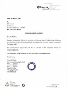 Investor Presentation – August, 2022