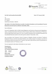 Notice of Board Meeting for quarter ended on 31st December, 20220 commentsSubmit a Comment Cancel replyYou must be logged in to post a comment.