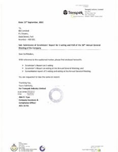 Scrutinizer’s Report for 56th Annual General Meeting0 commentsSubmit a Comment Cancel replyYou must be logged in to post a comment.